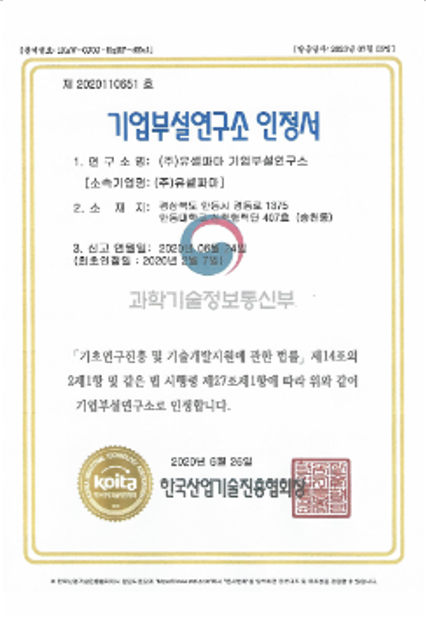 기업부설연구서 인정서